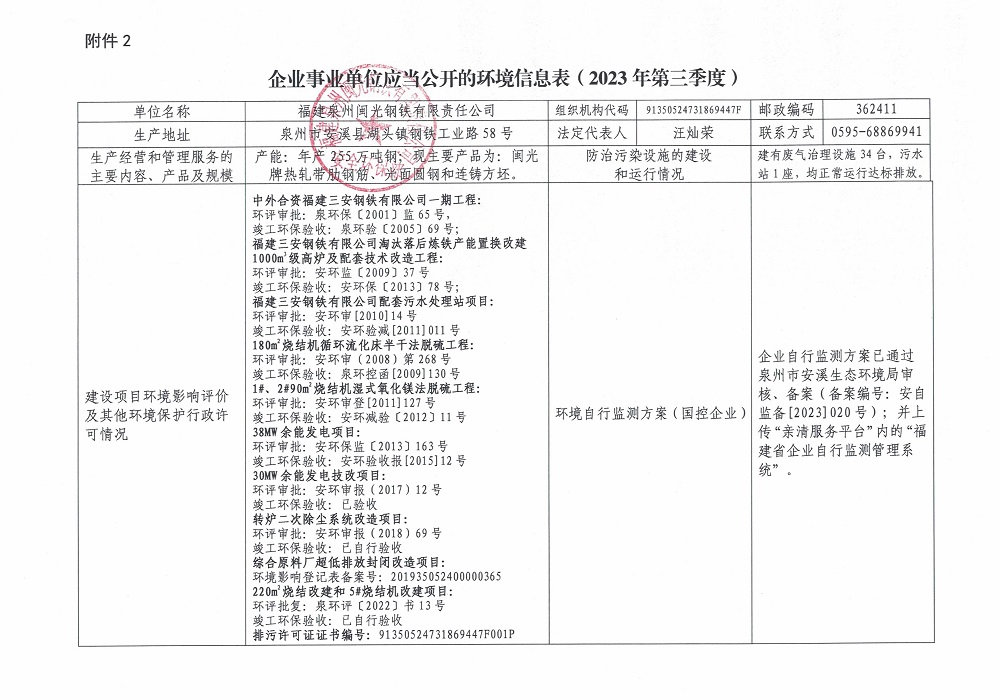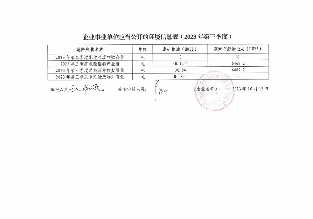 企業(yè)事業(yè)單位應(yīng)當(dāng)公開的環(huán)境信息表(2023年度第三季度)