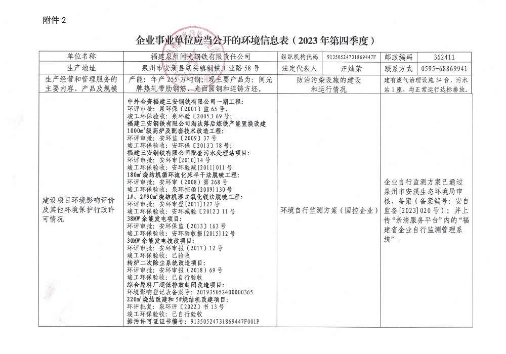 企業(yè)事業(yè)單位應(yīng)當(dāng)公開的環(huán)境信息表(2023年度第四季度)