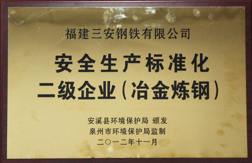 安全生產(chǎn)標(biāo)準(zhǔn)化二級企業(yè)-冶金煉鋼